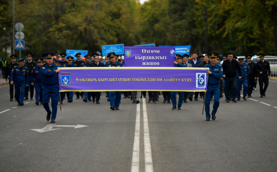 1-октябрда Т.Усубалиев атындагы аянтта Кырсыктардын тобокелдигин азайтуу күнүнө арналган салтанаттуу иш-чара өттү.