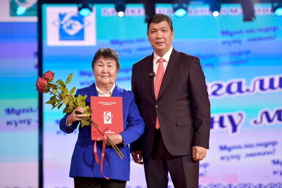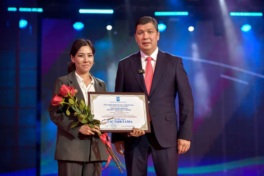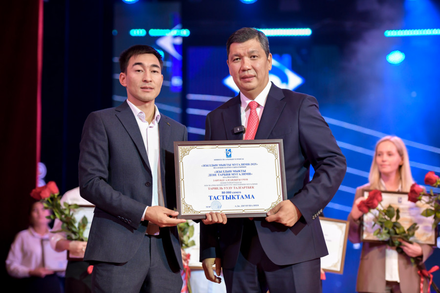 Шаар мэри «Жылдын мыкты мугалими – 2025» сынагынын, «Мыкты башталгыч класстын мугалими», «Мыкты кыргыз тили жана адабияты мугалими», «Мыкты математика мугалими», «Мыкты тарых мугалими», «Мыкты инсан жана коом таануу мугалими», «Мыкты англис тили мугалими», «Мыкты география мугалими», «Мыкты биология мугалими», «Мыкты химия мугалими», «Мыкты дене тарбия мугалими», «Мыкты сүрөт (ИЗО) мугалими», «Мектепке чейинки билим берүү уюмунун мыкты методисти», «Мектепке чейинки билим берүү уюмунун мыкты музыкалык жетекчиси», «Мектепке чейинки билим берүү уюмундагы мамлекеттик тилдин мыкты мугалими» номинацияларынын жеңүүчүлөрүн куттуктап, сыйлыктарды тапшырды.