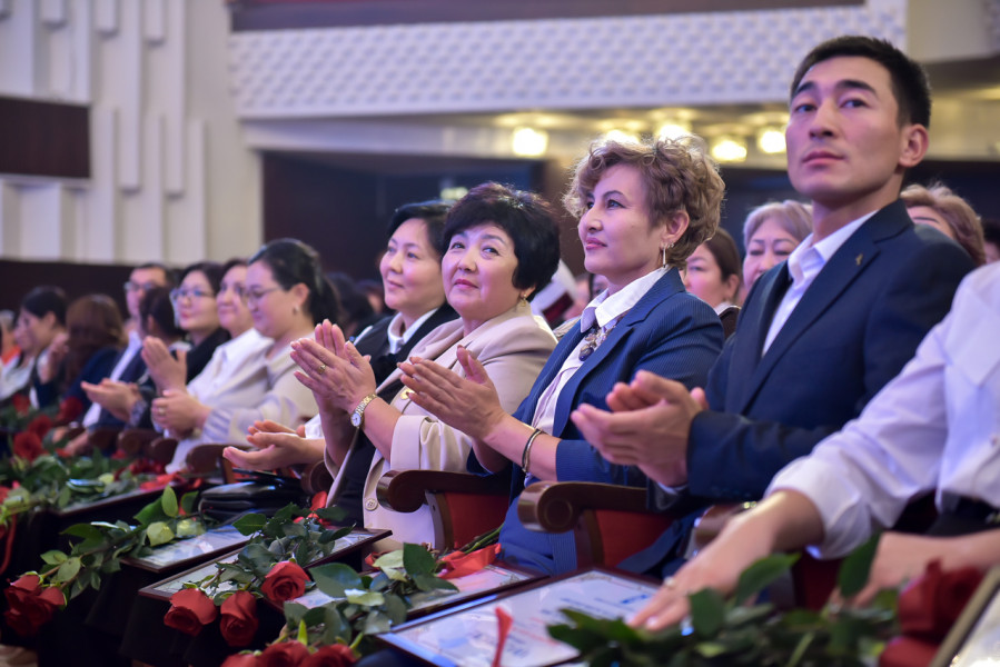 Иш-чарага калаа мэри Айбек Джунушалиев, КР агартуу министри Догдуркул Кендирбаева жана башка ардактуу коноктор катышып, мугалимдерди жана педагогикалык эмгектин ардагерлерин кесиптик майрамы менен куттукташты.