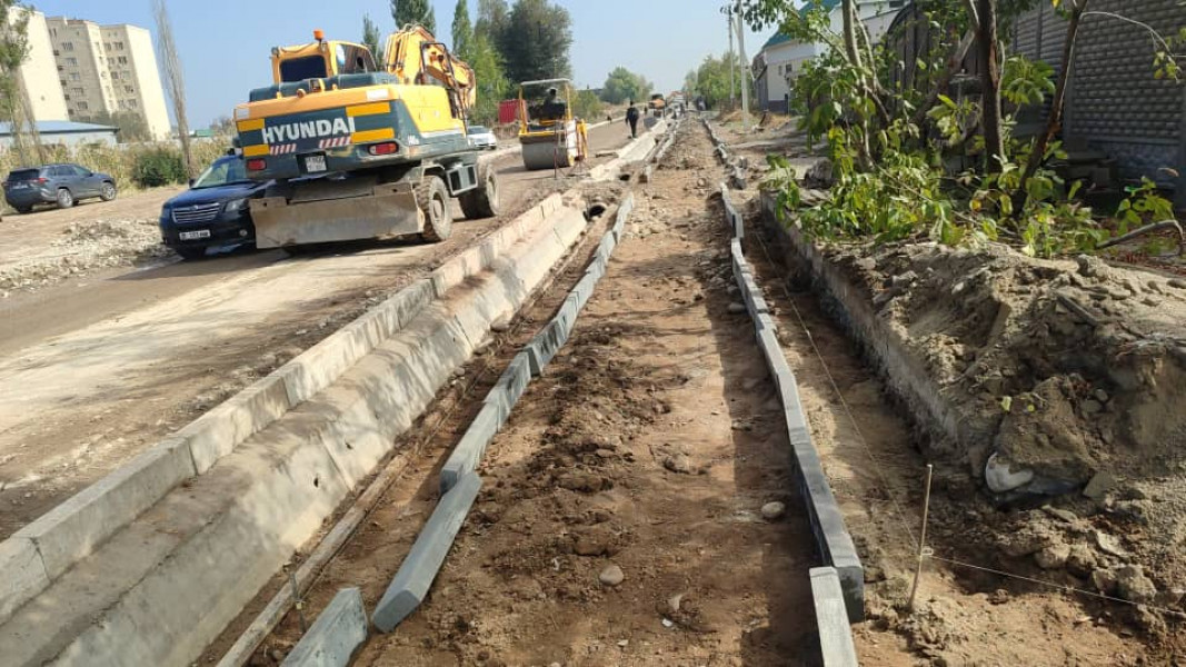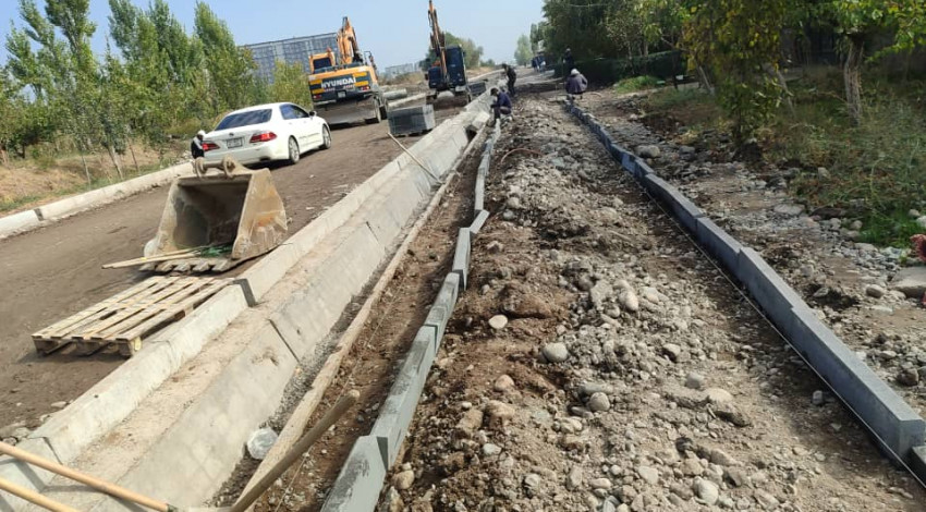 Ишкананын адистери тарабынан бордюрлар жана ирригациялык системалар орнотулуп, тротуарлардын негизи даярдалууда. Жакын арада жолдун өзүнүн негизин даярдоо башталат.