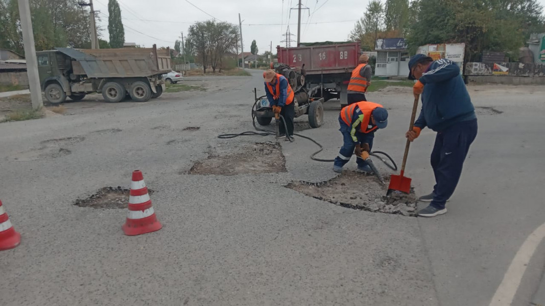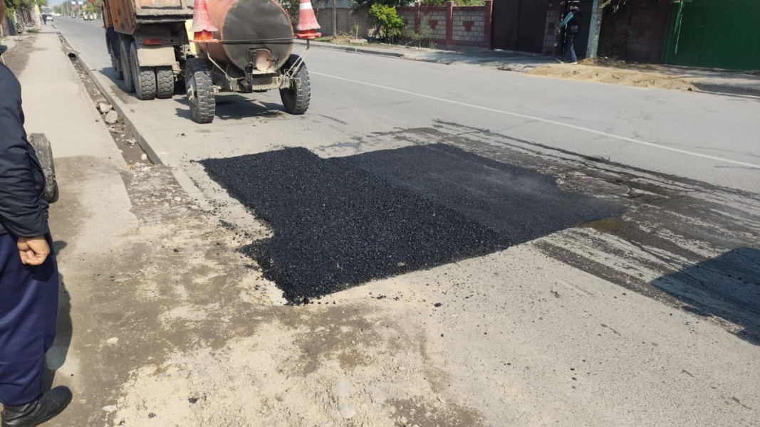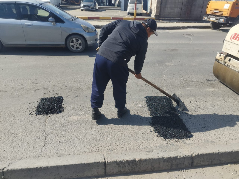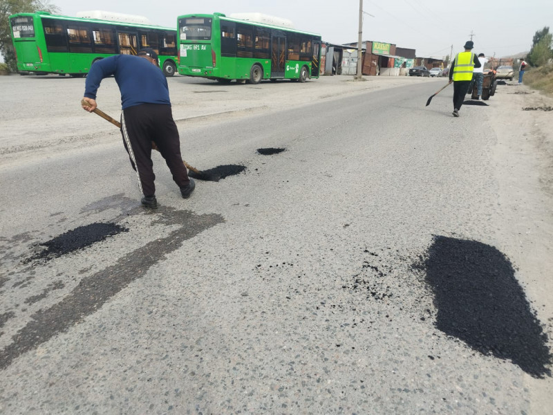 Учурда Д.Садырбаев көчөсүнүн Гагарин көчөсүнөн Масалиев көчөсүнө чейинки бөлүгүндөгү чуңкурларды оңдоо иштери жүрүп жатат.