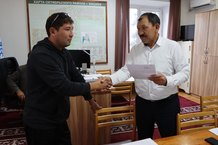 Октябрь районунда жер мунапысы башталгандан бери 210 жашоочуга жер тилкесин бекитип берүү боюнча чечим кабыл алынган. Келип түшкөн арыздардын саны 8 074, комиссиянын 42 отуруму өткөрүлдү.