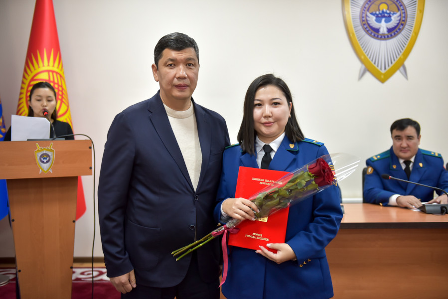 Кыргыз Республикасынын прокуратура кызматкерлеринин күнүнө карата мэр Айбек Джунушалиев Бишкек шаардык прокуратурасынын кызматкерлерин кесиптик майрамы менен куттуктап, сыйлыктарды тапшырды.