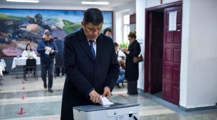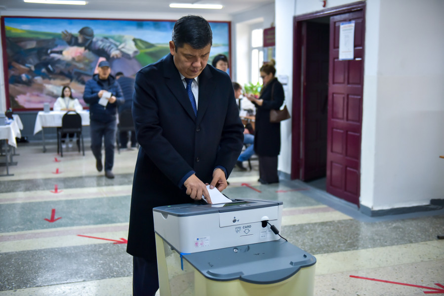 Бишкек шаарынын мэри Айбек Джунушалиев Кыргыз Республикасынын Жогорку Кеңешинин депутаттарын мөөнөтүнөн мурда шайлоого катышып, борбордогу №1220 шайлоо участогунда добуш берди.