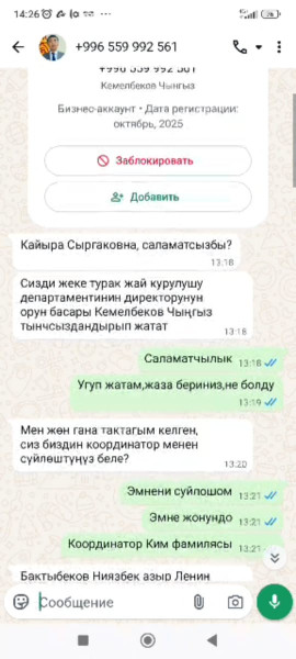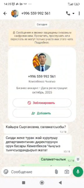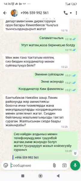 Урматтуу шаардыктар, сак болуңуздар жана жеке маалыматыңызды белгисиз адамдарга бербеңиздер. Эгер шектүү аракеттерге туш болсоңуз, дароо укук коргоо органдарына, ошондой эле 0312 97 92 97, 0504 11 01 21 телефондору аркылуу же Бишкек шаарынын мэриясынын Жеке турак жай курулуш жана шаар куруу департаментине Туңгуч кичирайону, № 57 дарегине кабарлаңыздар.