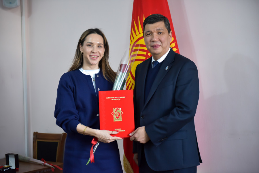Шаар мэри Айбек Джунушалиев «Северное сияние грейт» ЖЧКсынын кызматкерлерин Бишкек шаарынын маданий турмушун өнүктүрүүгө багытталган иш-чараларды уюштурууга жана өткөрүүгө кошкон салымы үчүн сыйлады.