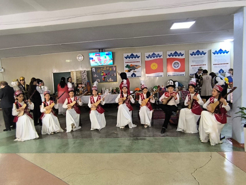 Мектептин фойесинде көргөзмө уюштурулуп, анда №16 (кыргыз), №33 (орус), №30 (дунган), №85 (татар), №94 (индия), №43 (уйгур), №115 (корей), №111 (өзбек) жана №4 (кытай) мектептери улуттук символикаларын, музыкалык аспаптарын, элдик кол өнөрчүлүк буюмдарын жана улуттук кийимдерин тааныштырышты. Окуучулар Кыргызстанда жашаган элдердин ырларын аткарып, бийлерин бийлешти.