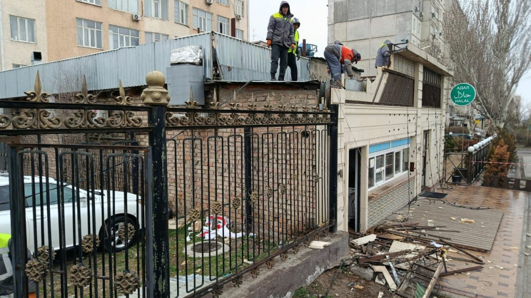 Бишкек шаарынын мэриясынын Жер пайдаланууну контролдоо башкармалыгы Тыналиев көчөсүндө жайгашкан «Аль Бухари» кафесинин бир бөлүгүн демонтаждоо иштерин жүргүзүүдө.