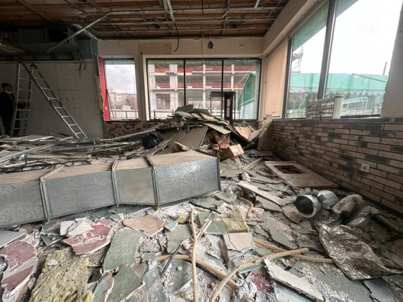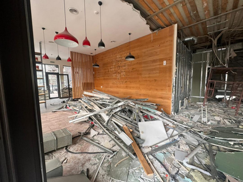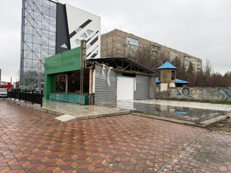 Бишкек шаарынын 6-кичи районунда, Юнусалиев жана Шопен көчөлөрүнүн кесилишинде жайгашкан коомдук пиццерия тамактануучу жайы демонтаждалууда.