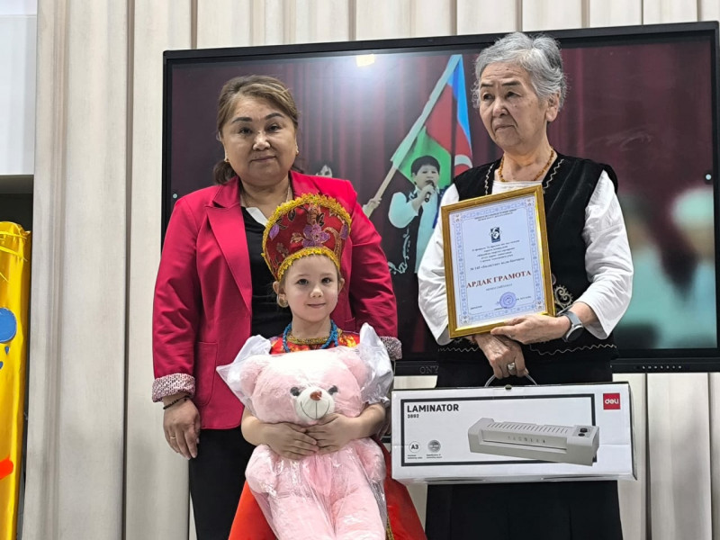 Жогорку деңгээлдеги даярдыгын, чыгармачылык мамилесин жана эне тилине, маданиятына болгон сүйүүсүн көрсөткөн катышуучулар Бишкек шаарынын мэриясынын Билим берүү департаментинин дипломдору жана эстелик белектер менен сыйланышты.