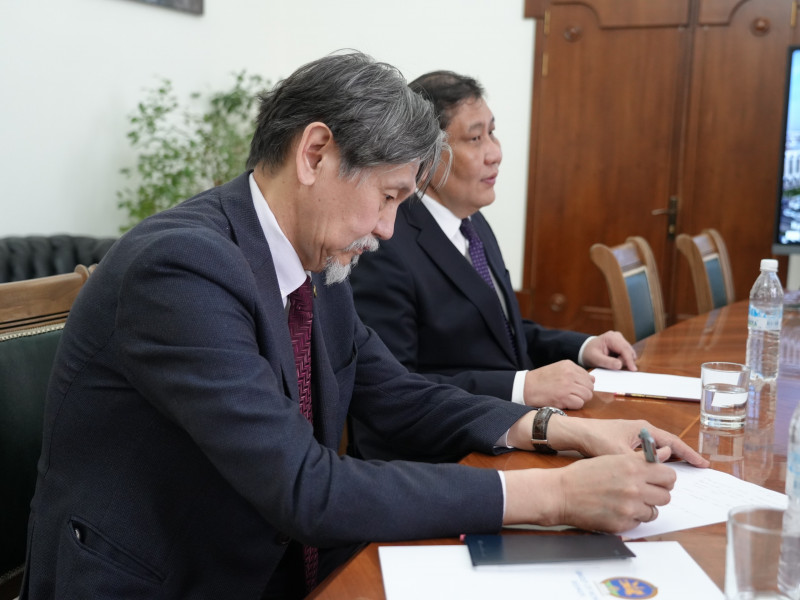 Бишкек шаарынын мэри Айбек Джунушалиев Монголиянын Кыргыз Республикасындагы Атайын жана Ыйгарым укуктуу Элчиси Содном Ганхуяг менен жолукту.