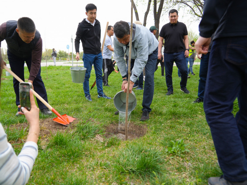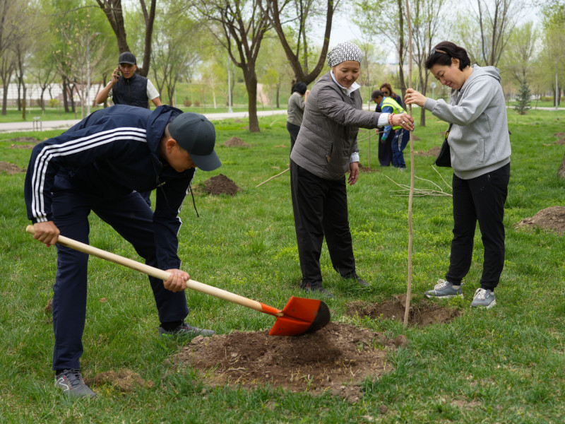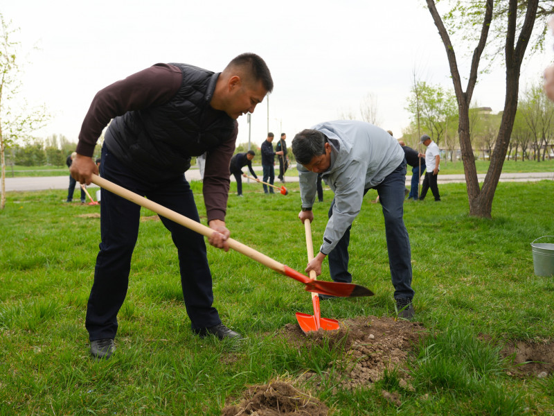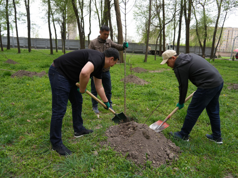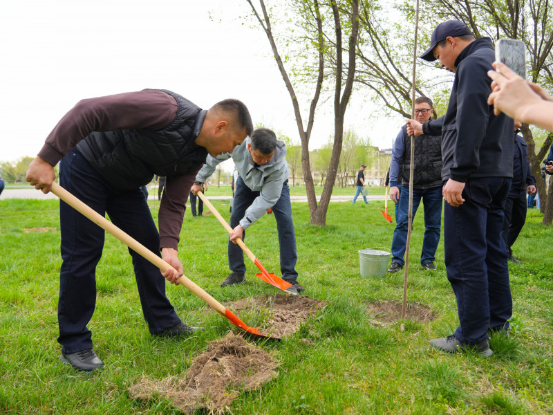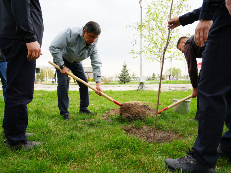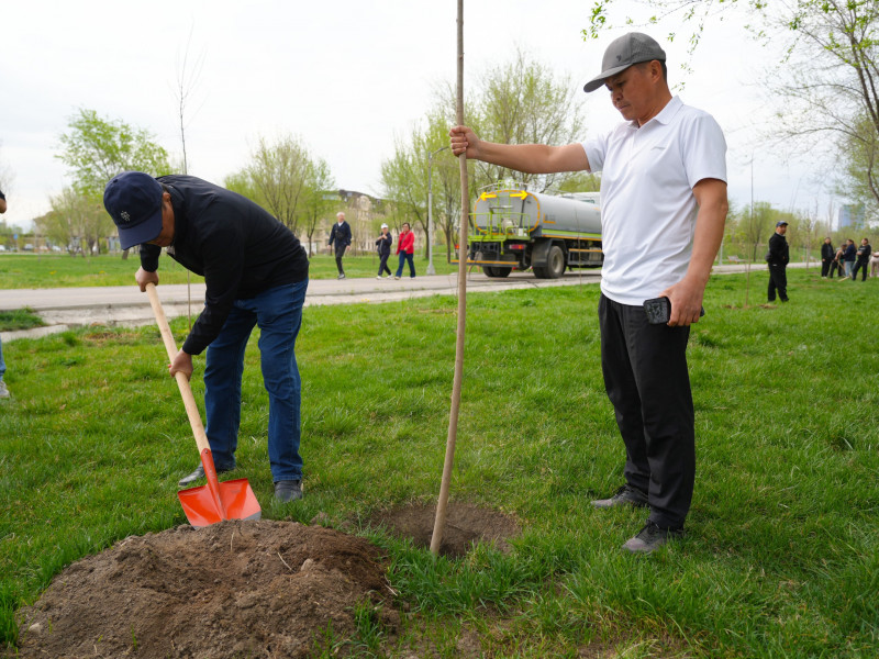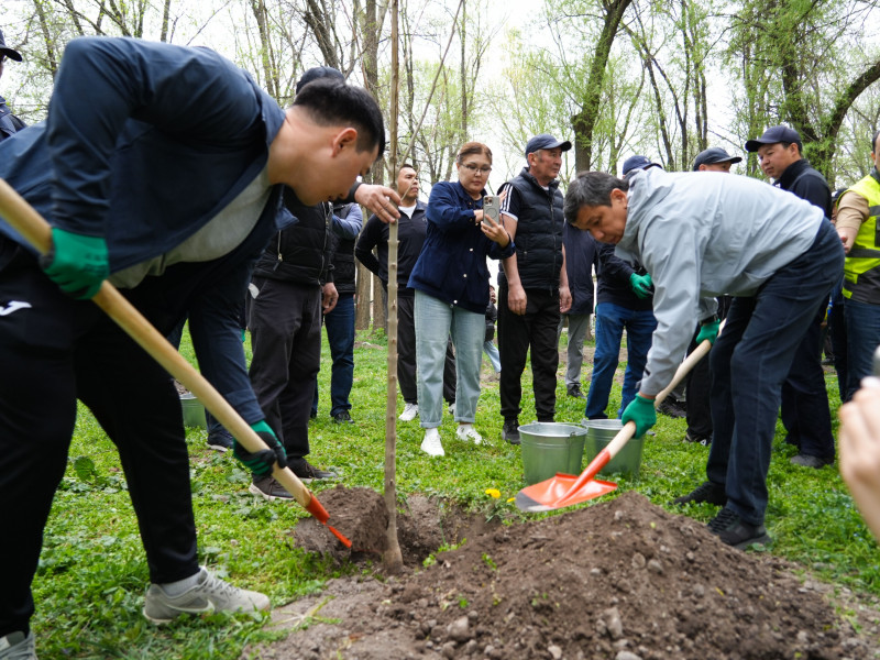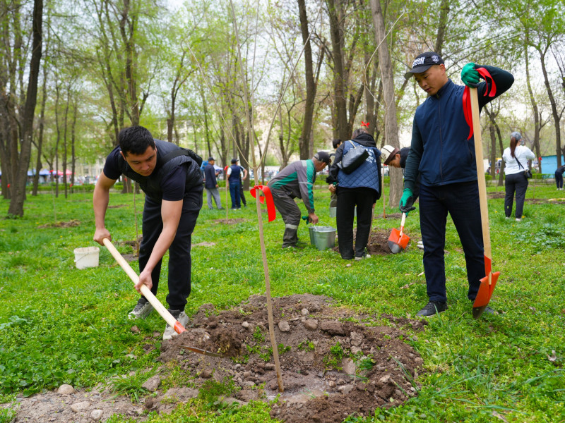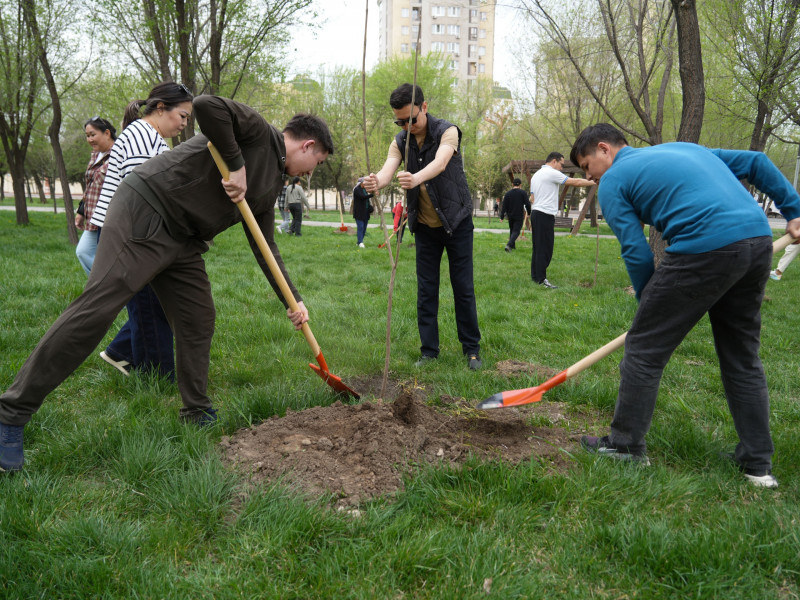 «Адинай» паркында Бишкек шаарынын мэриясынын борбордук аппаратынын кызматкерлери Октябрь райондук администрациясынын өкүлдөрү менен биргеликте, мэр Айбек Джунушалиевдин катышуусунда массалык дарак отургузуу иш-чарасын өткөрүштү.