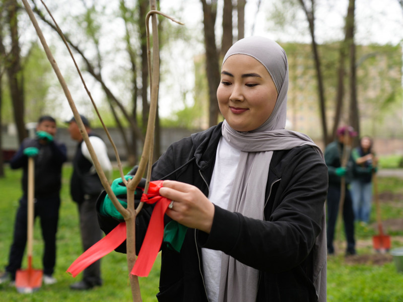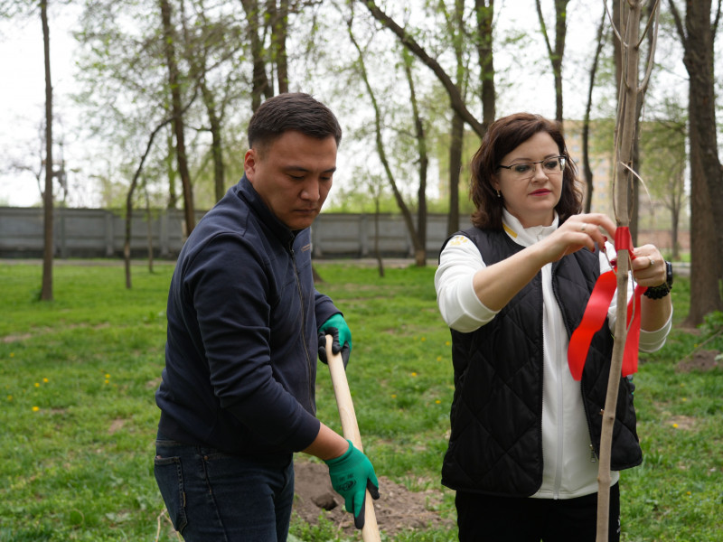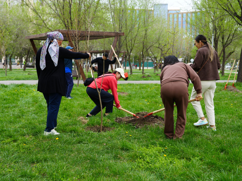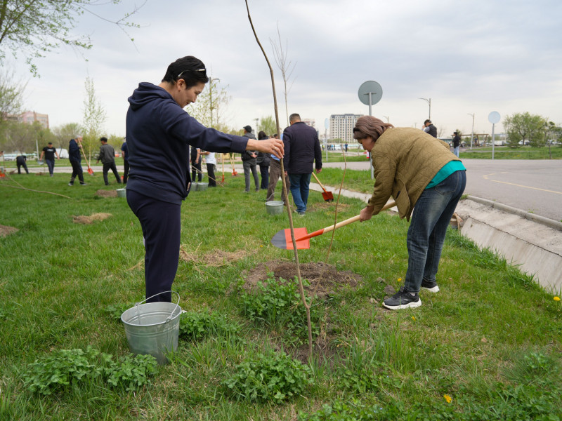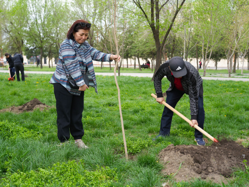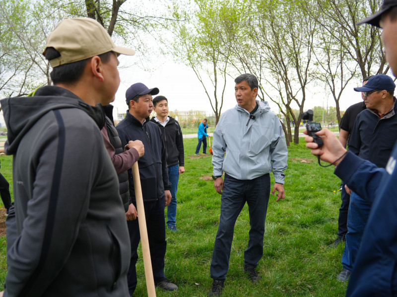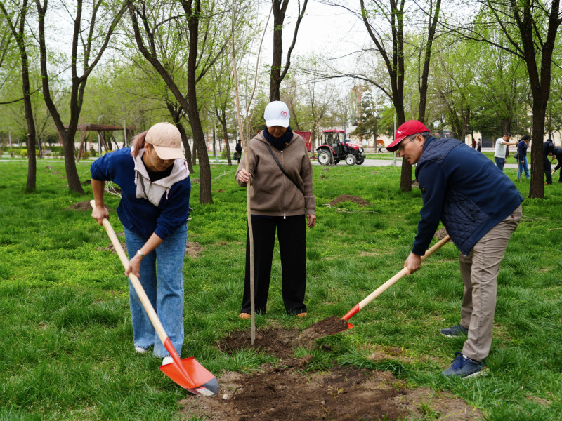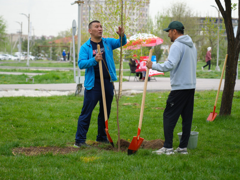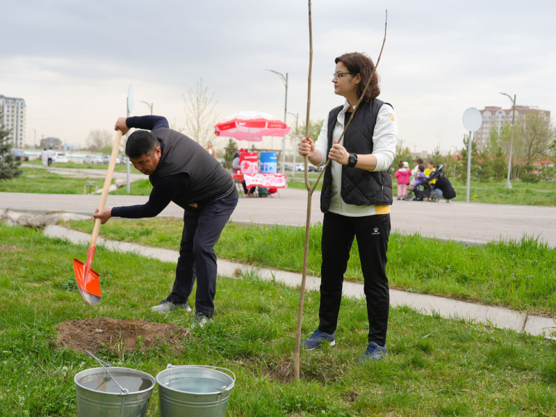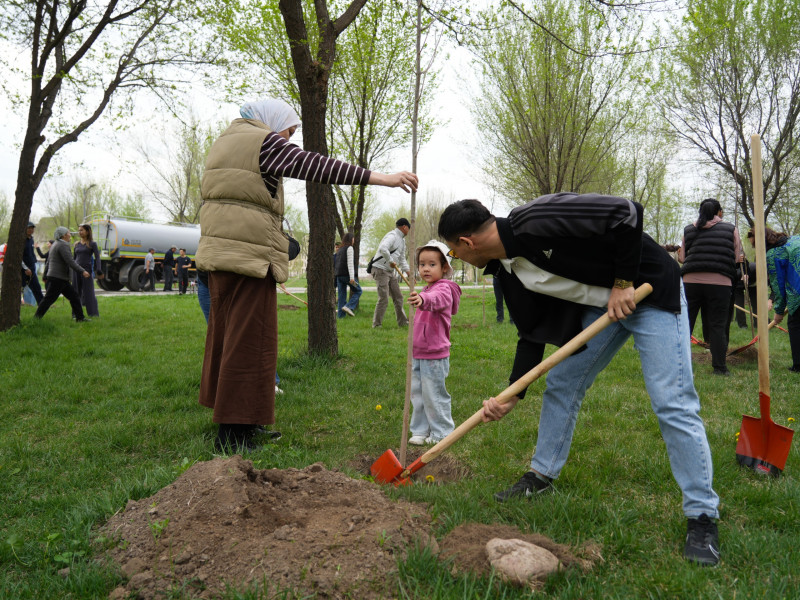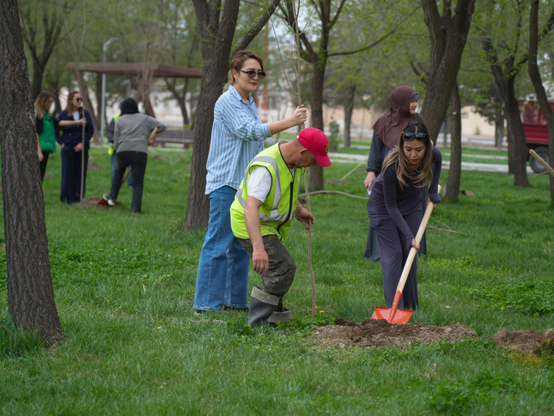«Адинай» паркында Бишкек шаарынын мэриясынын борбордук аппаратынын кызматкерлери Октябрь райондук администрациясынын өкүлдөрү менен биргеликте, мэр Айбек Джунушалиевдин катышуусунда массалык дарак отургузуу иш-чарасын өткөрүштү.
