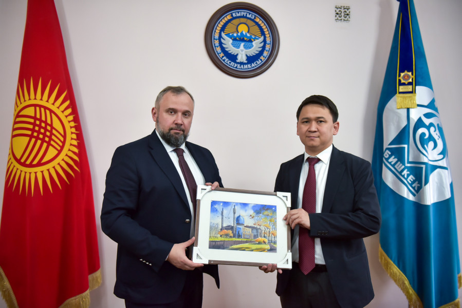 Бишкек шаарынын мэриясында мэрдин биринчи орун басары Кубанычбек Иманалиев Санкт-Петербург шаарынын Өкмөтүнүн делегациясы менен жолугушуу өткөрдү. Делегацияны тышкы байланыштар комитетинин төрагасынын орун басары Евгений Кассюра жетектеди.