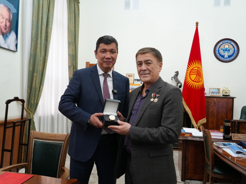 Анын жетишкендиктерин эске алуу менен Айбек Джунушалиев Салижан Шариповго эстелик белегин - Бишкек шаарынын мэриясынын баалуу кол саатын тапшырды.