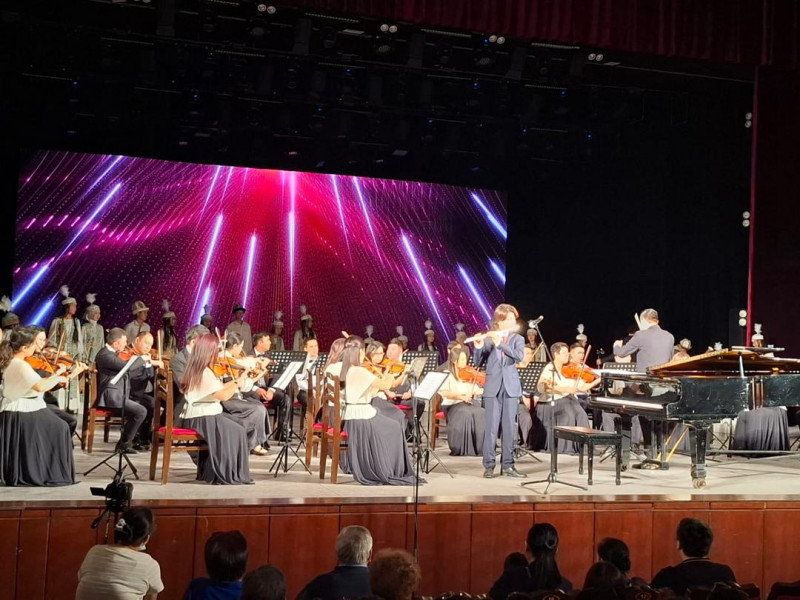 Концерттик программа пролог менен башталып, сөзү Алымкан Дегенбаеванын, обону Дамира Өмүркуловага таандык «Балалыкка Гимни» чыгармасы улук хор тарабынан Бишкек шаарынын мэриясынын чоң симфониялык оркестринин коштоосунда, дирижёр Урмат Тентимишевдин башкаруусунда аткарылды. Ошондой эле дүйнөлүк классиканын өкүлдөрү — Сергей Прокофьев жана Луиджи Боккерининин чыгармалары, ошондой эле кыргыз композиторлорунун, анын ичинде Атай Огонбаевдин чыгармалары жаңырды.