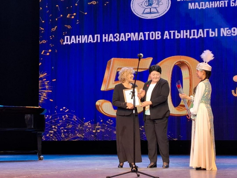 Расмий программанын алкагында сыйлык тапшыруу аземи өттү. Назгүл Мекешова маданиятты жана искусство билимин өнүктүрүүгө кошкон салымы үчүн мектептин окутуучуларына жана кызматкерлерине ардак грамоталарын жана сыйлыктарын тапшырды.