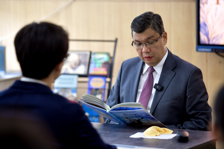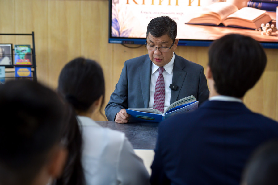 Жолугушуунун жүрүшүндө мэр окуучулардын адабий окууларына катышты. 11-класстын окуучулары үчүн Чыңгыз Айтматовдун "Кылым карытар бир күн" чыгармасынан үзүндү окуп берди жана окуу боюнча талкуу болду.