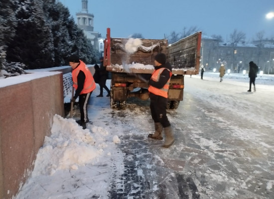 "Тазалык" ишканасы түнү бою жааган кардын кесепети менен күрөштү