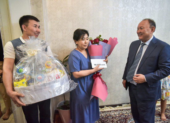 Бишкек шаарынын мэри математика боюнча эл аралык олимпиадалардын жеңүүчүсүнө Ф. Корнияшга сертификаттарды тапшырды