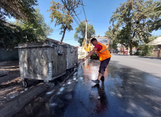 “Тазалык” ишканасы таштанды челектерин кайрадан жууп тазалоодо