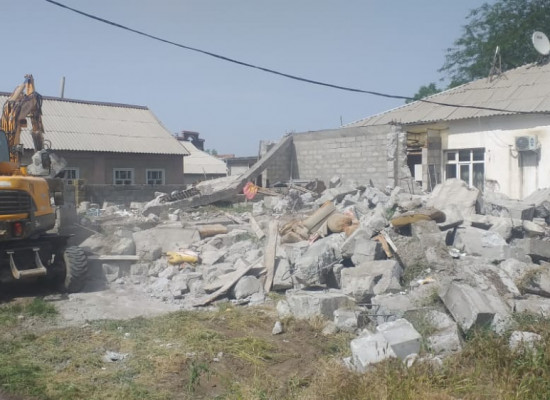 Космическая жана Садырбаев көчөлөрүнүн кесилишинде мыйзамсыз курулган капиталдык имарат бузулууда
