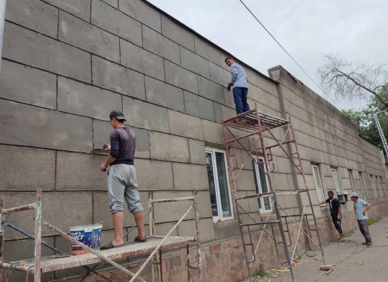 Бишкек троллейбус башкармалыгынын сырткы фасады оңдолуп жатат