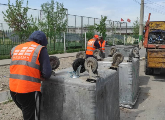 #учурда: Тазалык кызматкерлери фонтандарды тазалап, контейнерлерди калыбына келтирүүдө
