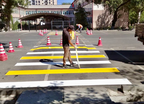 Борбор калаада мектептердин жанындагы жол чийиндерди жаӊыртуу уланууда