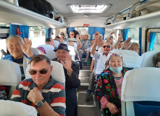 Социалдык мекеменин тургундары көлдүн жээгинде эс алышат