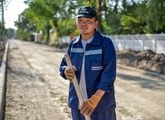 Жол жамайт, асфальт төшөйт, талыкпай эмгек кылат