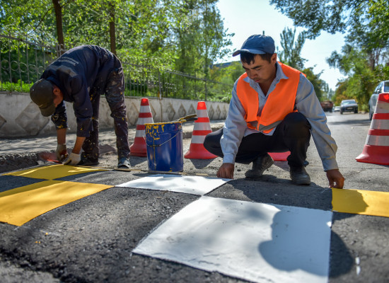 #Учурда: Бишкектин мектеп жана бала бакчаларынын жанындагы жол чийиндери жаӊыланып, жол белгилери орнотулууда