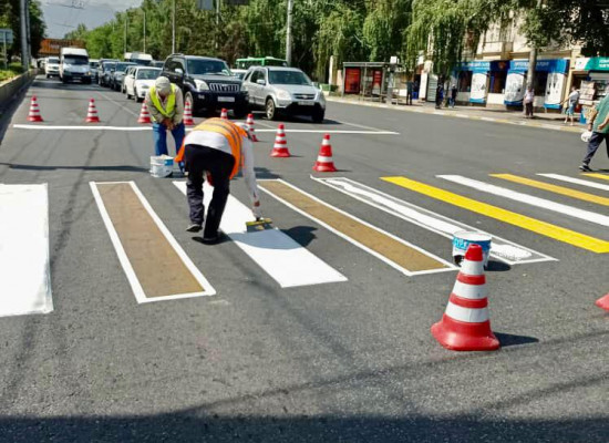 “Бишкекасфальтсервис” муниципалдык ишканасы жол чийиндерин жаӊыртууда