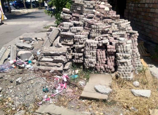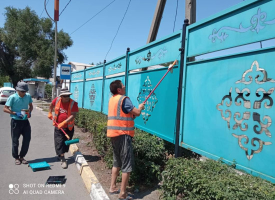 "Тазалык" муниципалдык ишканасынын кызматкерлери Фучик көчөсүндөгү дубалды иретке келтирип, жууп тазалашты