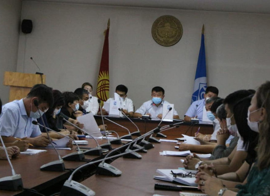 Covid-19: Октябрь акимиаты калкты тейлөө борборуна келгендер менен жолугушту