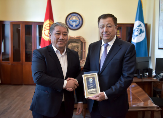 Бишкек шаарынын мэринин милдетин аткаруучу Бактыбек Кудайбергенов Аль-Фараби атындагы КазУУнун ректору Жансейит Туймебаев менен жолукту