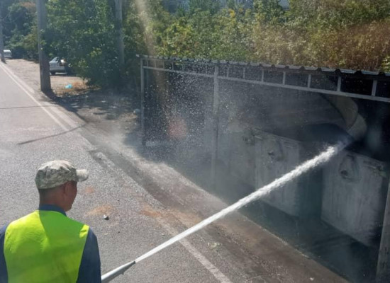 “Тазалык” муниципалдык ишканасы таштанды челектери жана контейнер турчу жайларды жууп тазалоодо