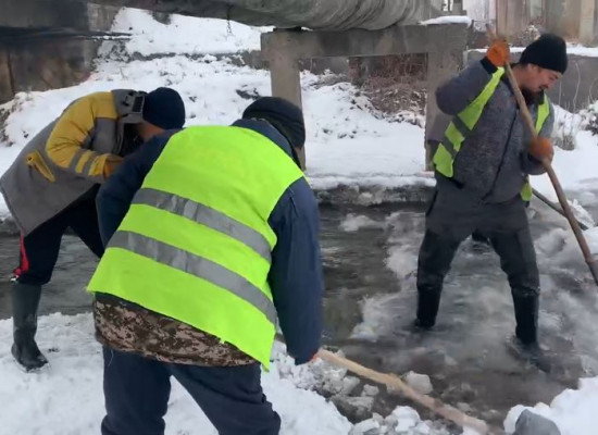 Шаардык кызматтар Ала-Арча суусунун жээгин кардан жана муздан тазалоодо