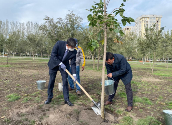 «АДИНАЙ» атындагы дарыгерлер жана ыктыярчылар сейил багына көчөттөр отургузуу башталды