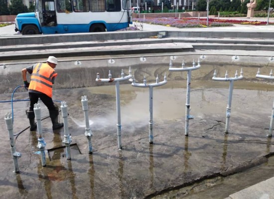 Фонтандарды жууп тазалоо жүргүзүлүүдѳ