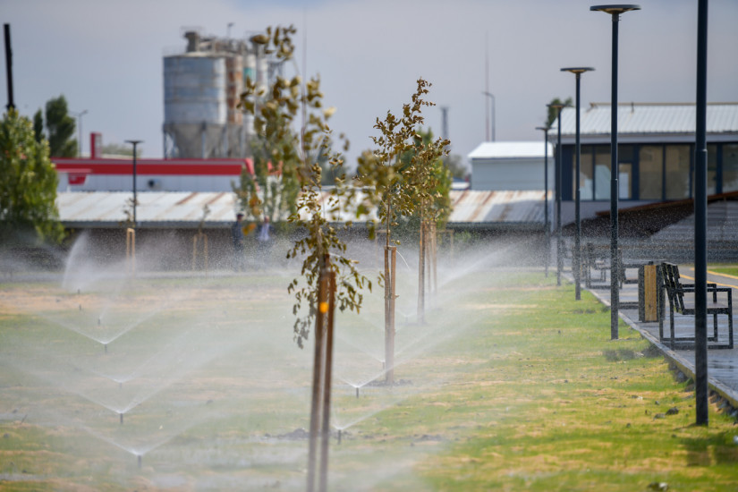 Высажено 150 деревьев (липы, платаны, ясеня и ивы), проложена система автоматического полива и смонтированы 414 лотков для водоотвода и дренажа.