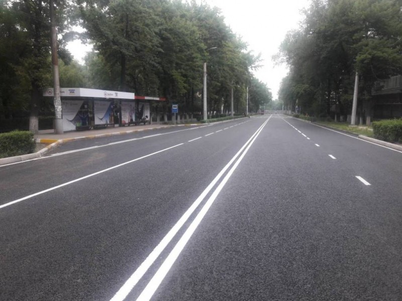 В рамках проекта «Восстановление дорожного покрытия автомобильных дорог города Бишкек» были проведены дорожные работы. В течение месяца были установлены новые бордюры, заменено дорожное полотно. Теперь оно двуслойное, верхний слой щебеночно-мастичный, с повышенным содержанием щебня и полимерными добавками.