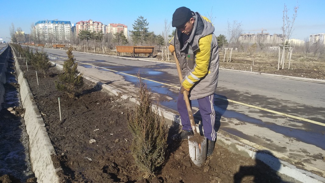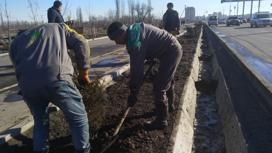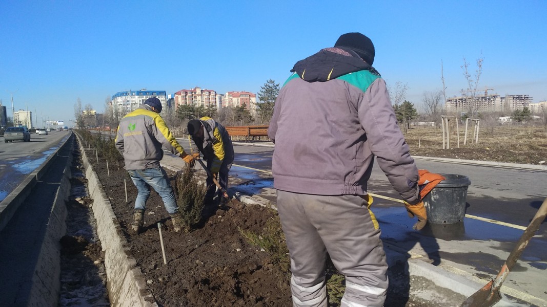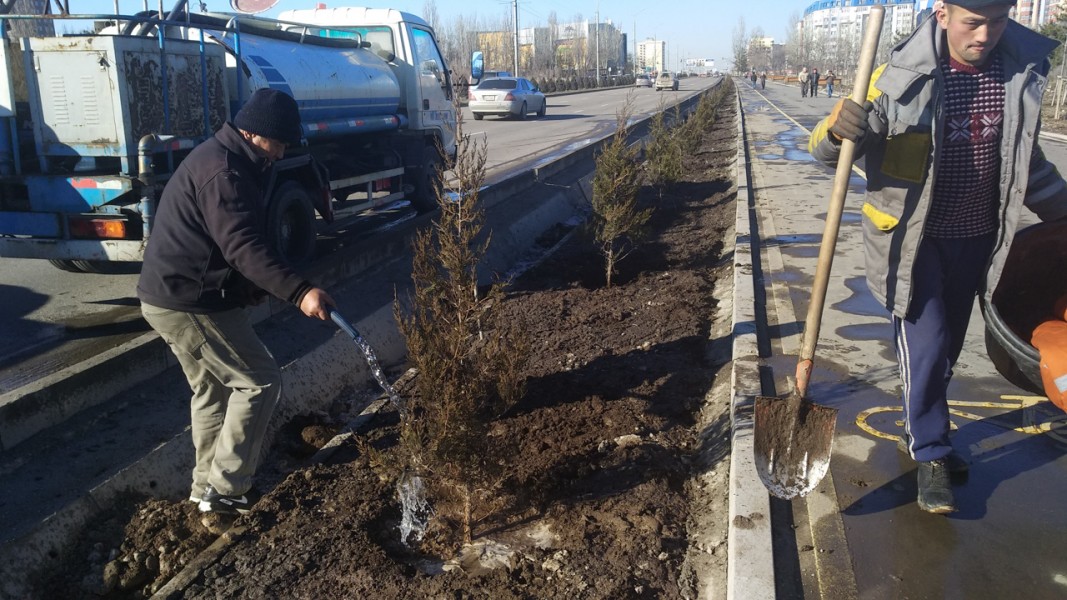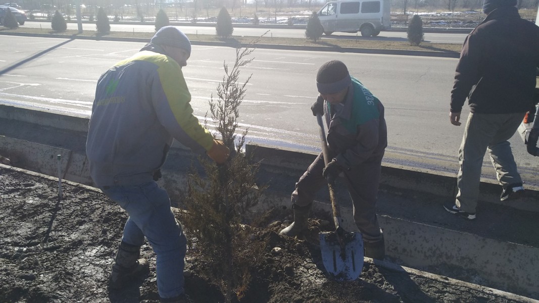 Сейчас ведутся посадки можжевельника по улице Масалиева от проспекта Айтматова до улицы Токтоналиева, там уже посажено 120 можжевельников. Озеленение Масалиева продолжится до улицы Байтик Баатыра.