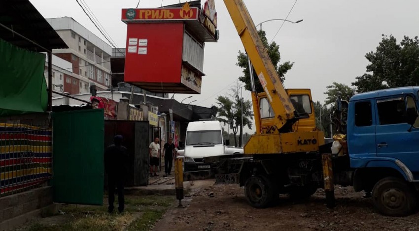В жилом массиве Ак-Орго на пересечении улиц Б. Алыкулова и Гагарина демонтирован пункт по замене масла. На пересечении проспекта Ч. Айтматова и улицы Балтагулова демонтирована рекламная конструкция.