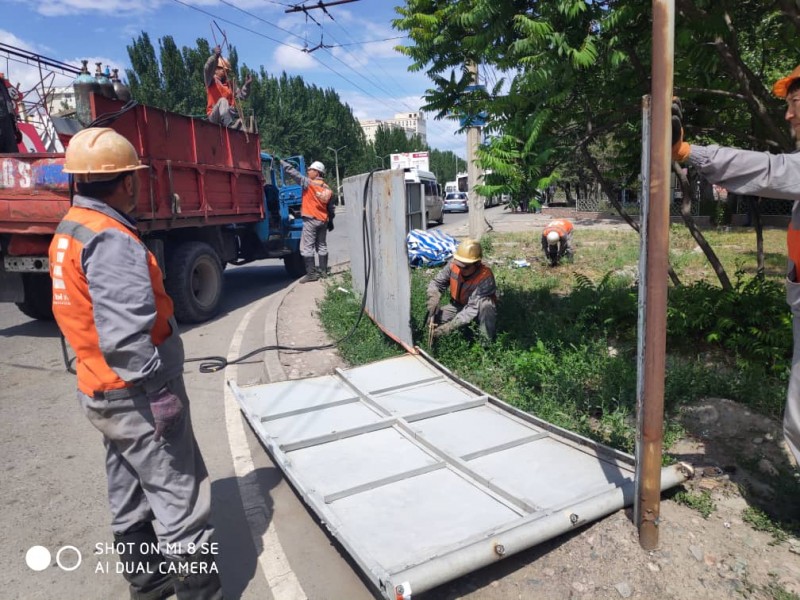 Специалистами муниципальных предприятий «Тазалык», «Бишкекглавархитектура» совместно с управлением землепользования и строительства демонтированы рекламные баннеры, растяжки и наклейки по проспекту Манаса, от проспекта Чуй до ул. Боконбаева.