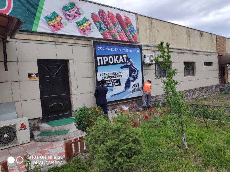 Всего было демонтировано 96 м2 растяжек. Ранее специалистами МП «Бишкекглавархитектура» были вручены уведомления предпринимателям о самостоятельном демонтаже незаконно установленных рекламных конструкций. Однако многие не выполнили требования, поэтому пришлось осуществить принудительный демонтаж.