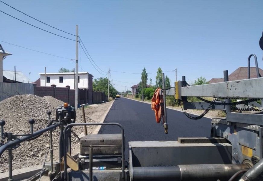 На участке протяженностью километр и шестьсот метров укладывают верхний слой дорожного покрытия. Асфальтобетон щебеночно-мастичный, повышенной прочности. Его используют при ремонте всех улиц, реабилитация которых идет по проекту «Восстановление дорожного покрытия автомобильных дорог города Бишкек».