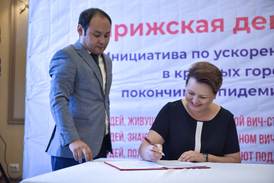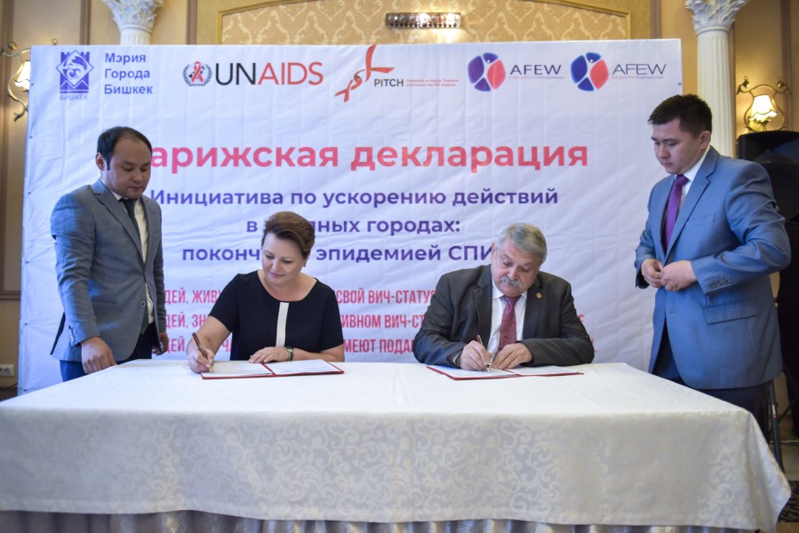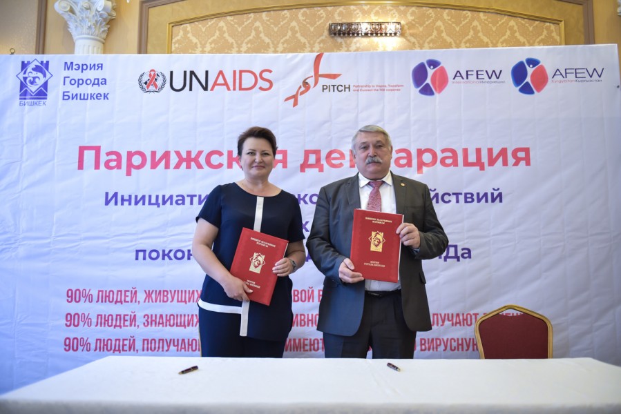 Документ подписали вице-мэр Бишкека Татьяна Кузнецова и директор Объединённой Программы ООН по ВИЧ/СПИДу (ЮНЭЙДС) по Центральной Азии Александр Голиусов.