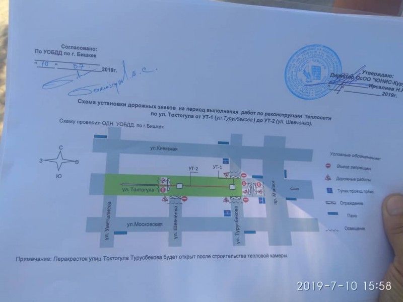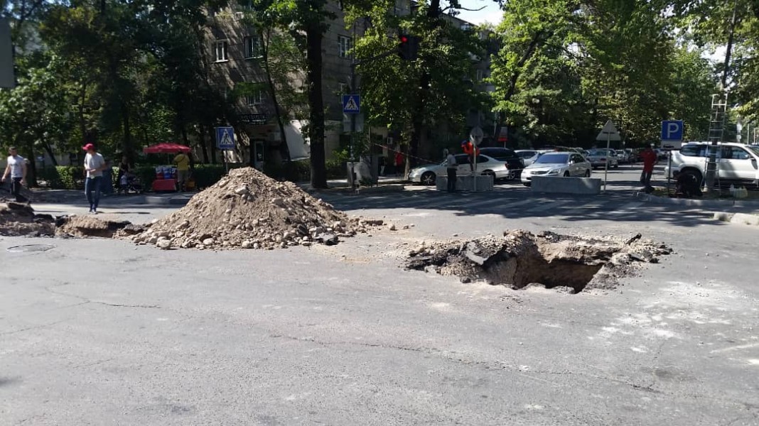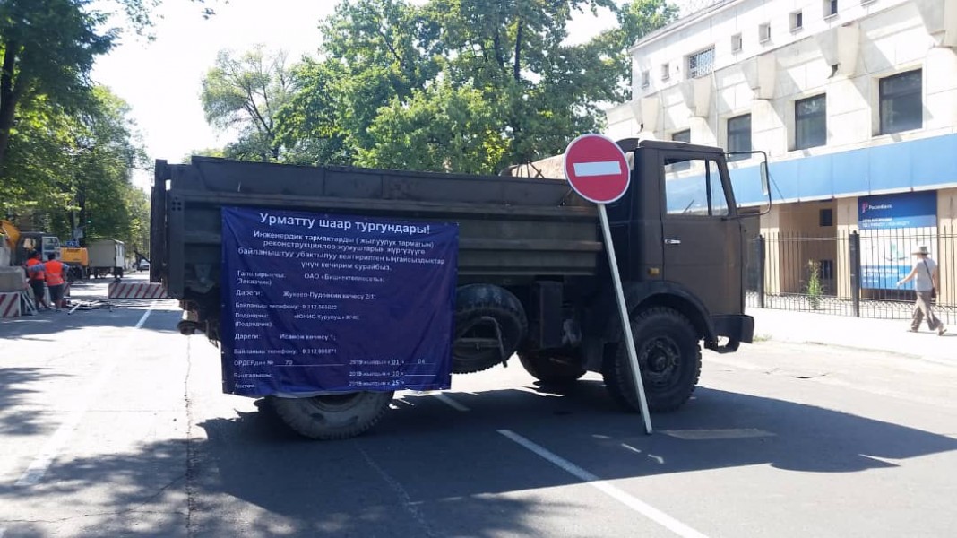 На этом участке по заказу ОАО «Бишкектеплосеть» проводится реконструкция магистральной тепловой сети. Работы также затронули перекресток улиц Токтогула и Турусбекова, движение по которому также закрыто.