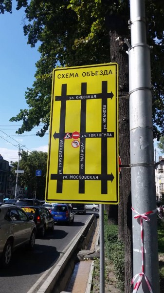 Улица Токтогула закрыта для проезда автомобильного транспорта между проспектом Манаса и улицей Уметалиева.
